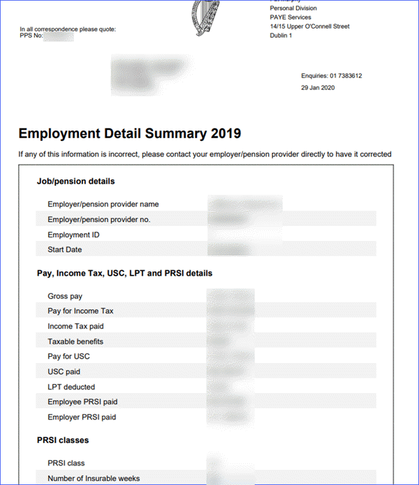 The Employment Detail Summary, formerly called the P60, can be obtained from the Revenue Commission.