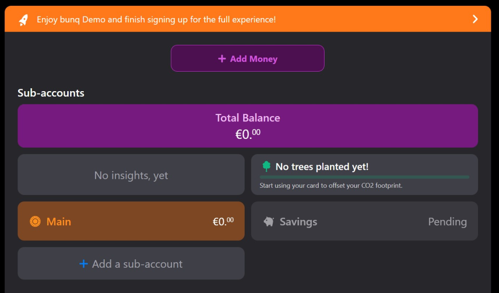 Once these details are filled in, you’re given access to a Bunq demo account where you can start using Bunq instantly as part of your 30 day free trial. You can then sign up to access the rest of Bunq’s Ireland’s features.